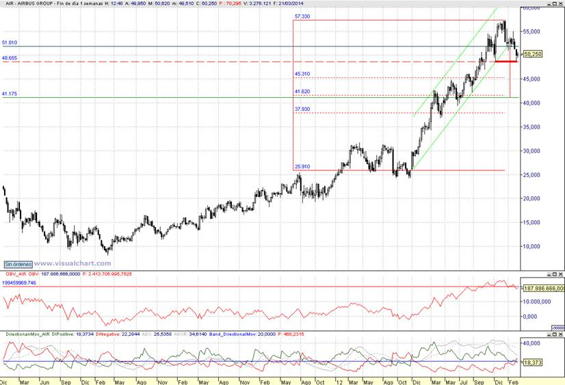 Consejo operativo Airbus Group NV (EPA:AIR) Mktcap 38.86 B rentabilidad por dividendo 1,50 % Aconsejariamos venta parcial tras cierre semanal inferior a 48,65 € Objetivo pretendido potencial sobre 41,2 € / stop a la recompra tras cierre diario superior a 51,8 € | |