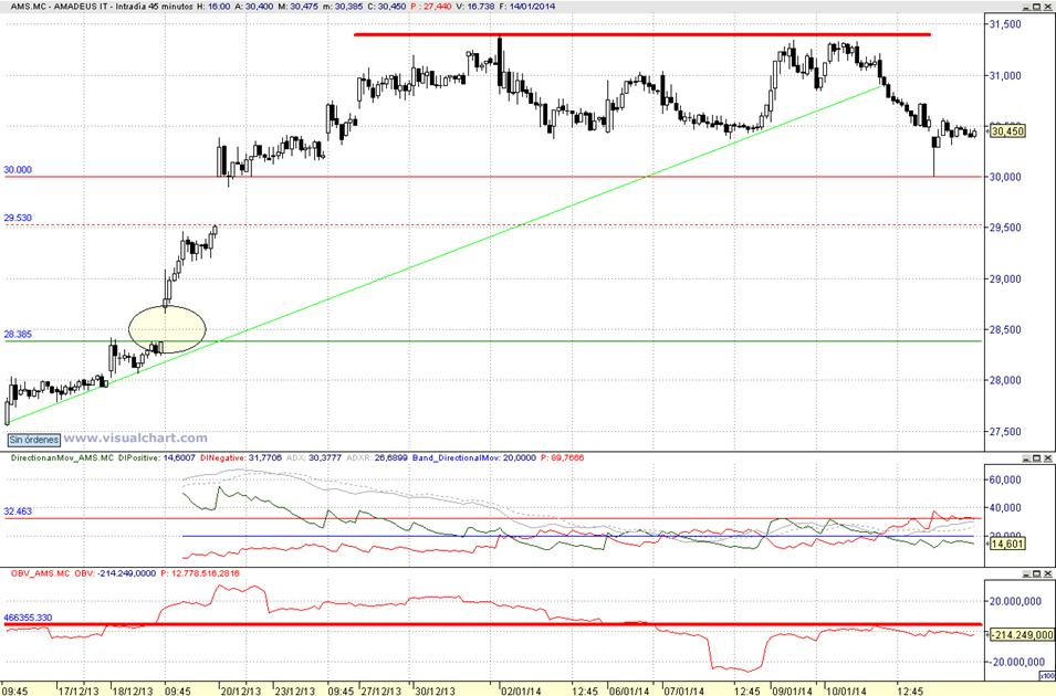 Consejo operativo: AMADEUS IT Aconsejariamos venta parcial de corto plazo tras series inferiores a 30 € incrementando por debajo de 29,50 € / Objetivo pretendido de recompra sobre 28,4 € |