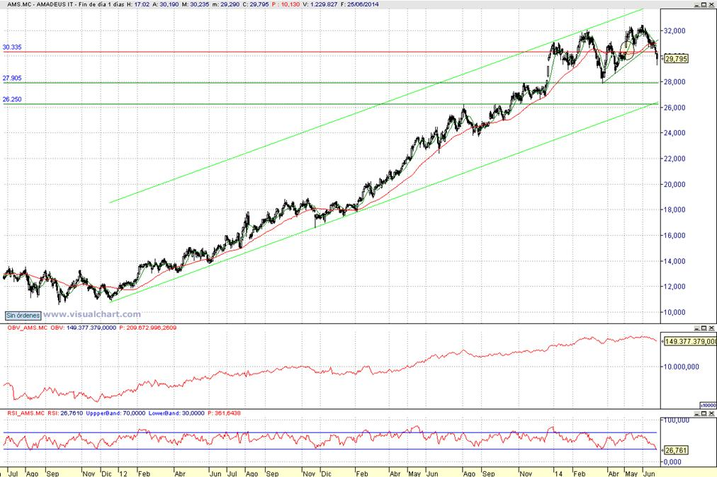 Objetivo pretendido entre 28,1 € y 26,2 € / Recompra al stop tras cierre diario superior a 30,85 €