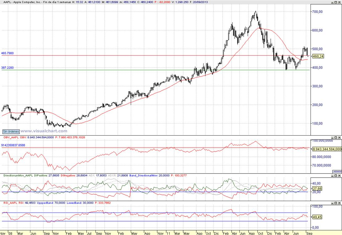 Consejo operativo Apple Inc. NASDAQ:AAPL mktcap 416.B rentabilidad por dividendo Aconsejamos vender, Objetivo pretendido top sobre los entornos de 387 $ / stop a la recompra con cierre diario superior a 475 $ | |