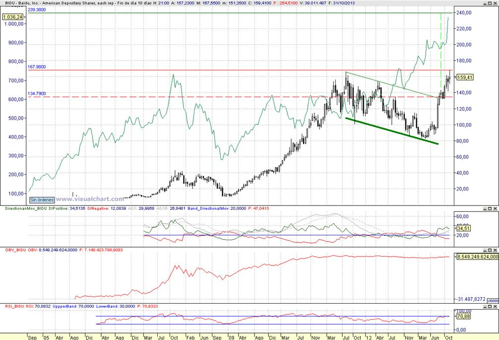 Consejo operativo Baidu Inc (ADR) (NASDAQ:BIDU) Mktcap 58.03 B Aconsejamos añadir largos, tras la superación y consolidación de la zona de 168 $ , mantenemos el Objetivo pretendido Top de medio y largo plazo, sobre los entornos de 240 $ Stop loss < 134 $ al cierre semanal | |