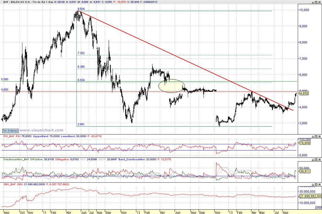 Aconsejamos la compra de este titulo, con cierre diario superior a 4,95 € / Objetivo pretendido top sobre 5,60 € Stop loss < 4,59 € al cierre diario | |
