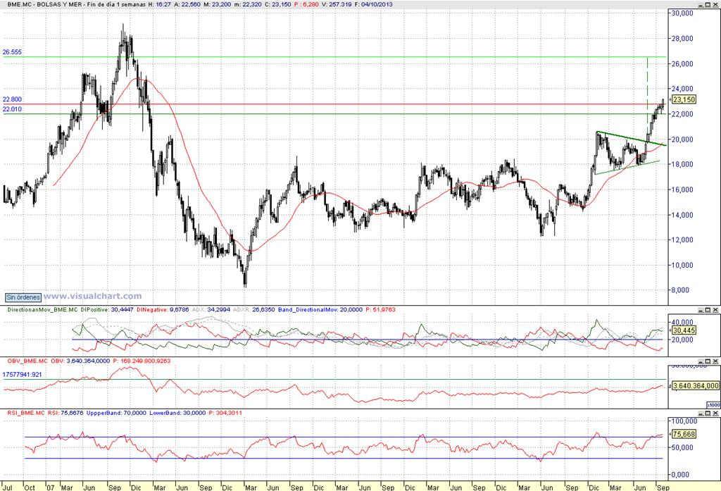 Bolsas y Mercados Españoles (BME), el patrón del parqué español, tiene un nuevo accionista de referencia. Se trata del gigante escocés Standard Life, que ha confesado hoy a la Comisión Nacional del Mercado de Valores (CNMV) que ostenta el 1,05% del capital. A los actuales precios de mercado, esta participación está valorada en unos 20 millones de euros, ya que BME cotiza hoy en los 22,5 euros, sin apenas variación respecto al cierre de ayer (22,52 euros). Sin embargo, en realidad, Standard Life se hizo con este paquete de acciones hace varios meses. Según ha reconocido ella misma a la CNMV, fue el pasado 17 de enero cuando sobrepasó el 1% del capital. Por aquel entonces, los títulos de BME cotizaban en 21,55 euros, lo que significa que Standard Life tiene unas plusvalías latentes de unos 878.000 euros.