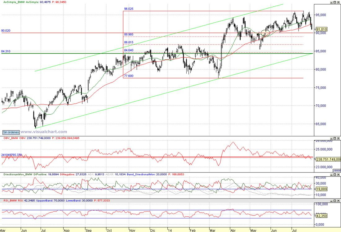 Consejo operativo Bayerische Motoren Werke AG (FFT:BMW) Mktcap 10.92 B Rentabilidad por dividendo 2,86% Aconsejaríamos venta parcial tras cierre diario inferior a 90 € Objetivo de recompra sobre 84,3 € / Recompra al stop tras cierre diario superior a 92,15 € | |