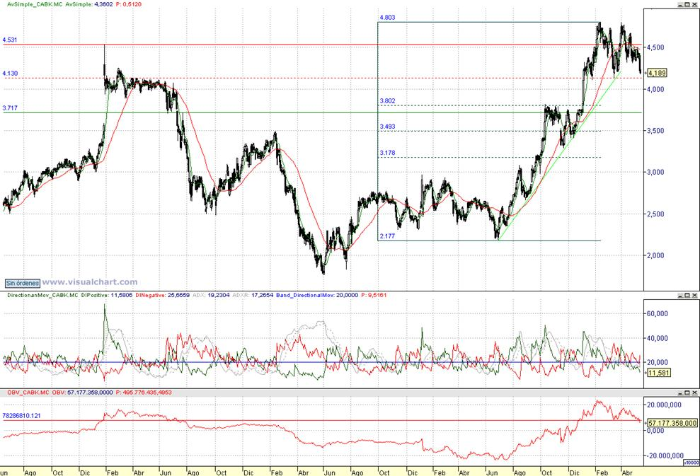 Consejo operativo CAIXABANK Aconsejariamos venta parcial tras cierre diario inferior a 4,13 € |