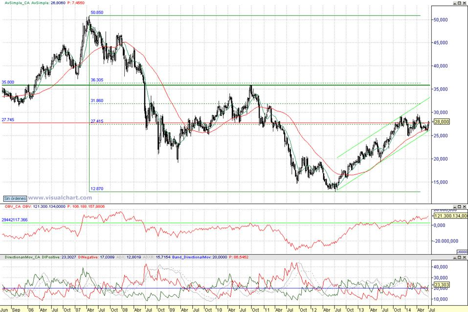 Consejo operativo Carrefour SA (PA:CA) Mktcap 19.63 B Rentabilidad por dividendo 2.21 % Aconsejaríamos comprar de cara al medio y largo plazo tras cierre semanal superior a 27,75 € Objetivo pretendido top sobre los 35,8 € / Stop loss < 26,55 € al cierre diario | |