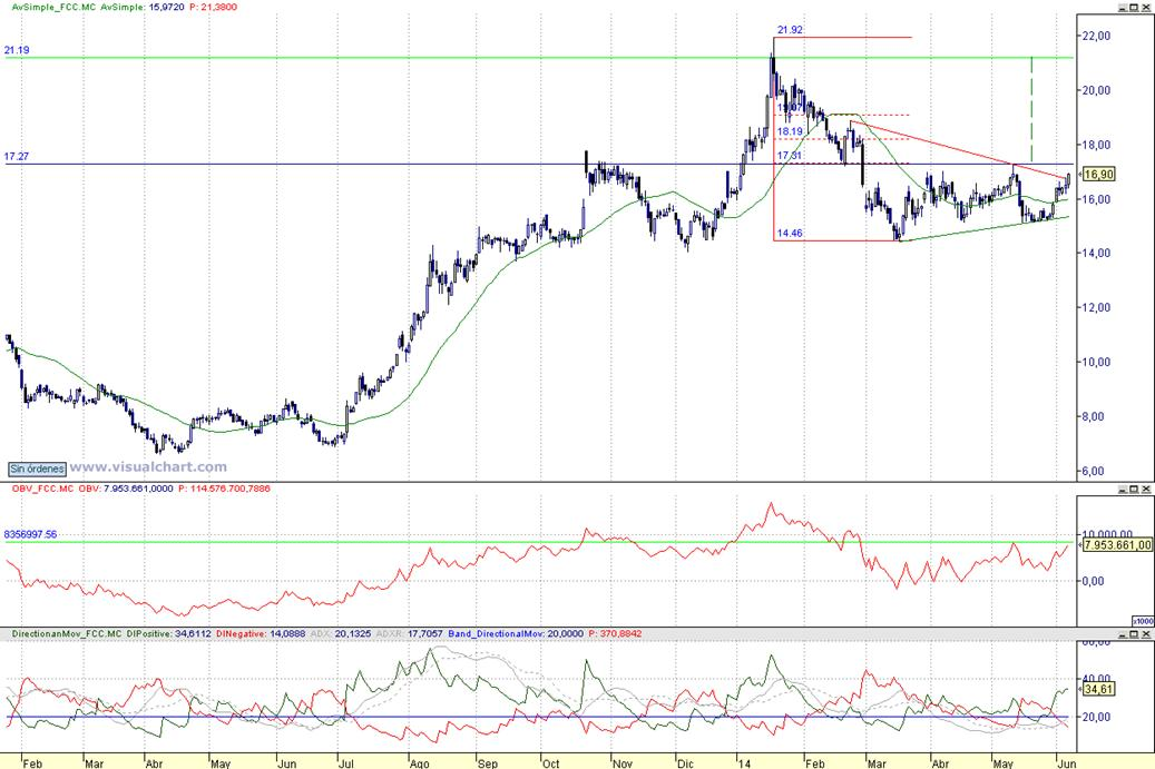 Consejo operativo Fomento de construcciones y contratas FCC Aconsejaríamos compra tras cierre diario superior a 17,27 € |