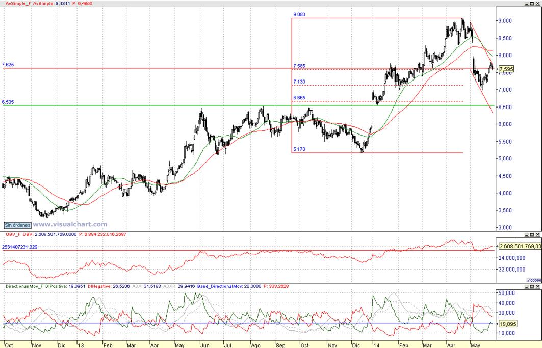 Consejo operativo Fiat SpA (BIT:F) Mktcap 9,46 B Aconsejaríamos venta parcial tras cierre diario inferior a 7,62 € Objetivo pretendido sobre 6,5 € / Recompra al stop tras cierre diario superior a 7,815 € | |||