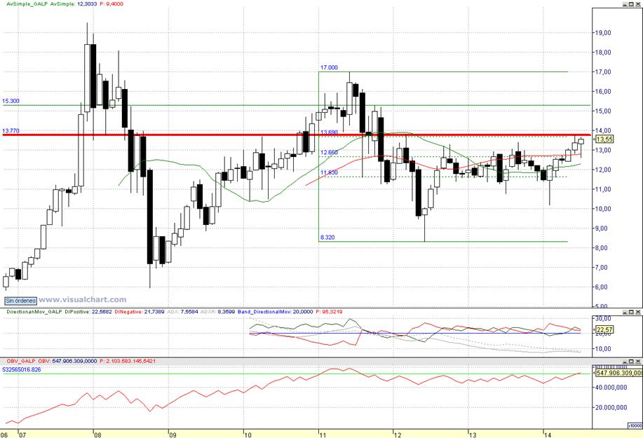 Consejo operativo Galp Energia SGPS SA (ELI:GALP) Mktcap 11.22B rentabilidad por dividendo 2,13% Aconsejaríamos compra parcial tras cierre mensual superior a 13,77 € Objetivo pretendido entre 15,3 € y 17 € / Stop loss < 13,15 € al cierre diario | |