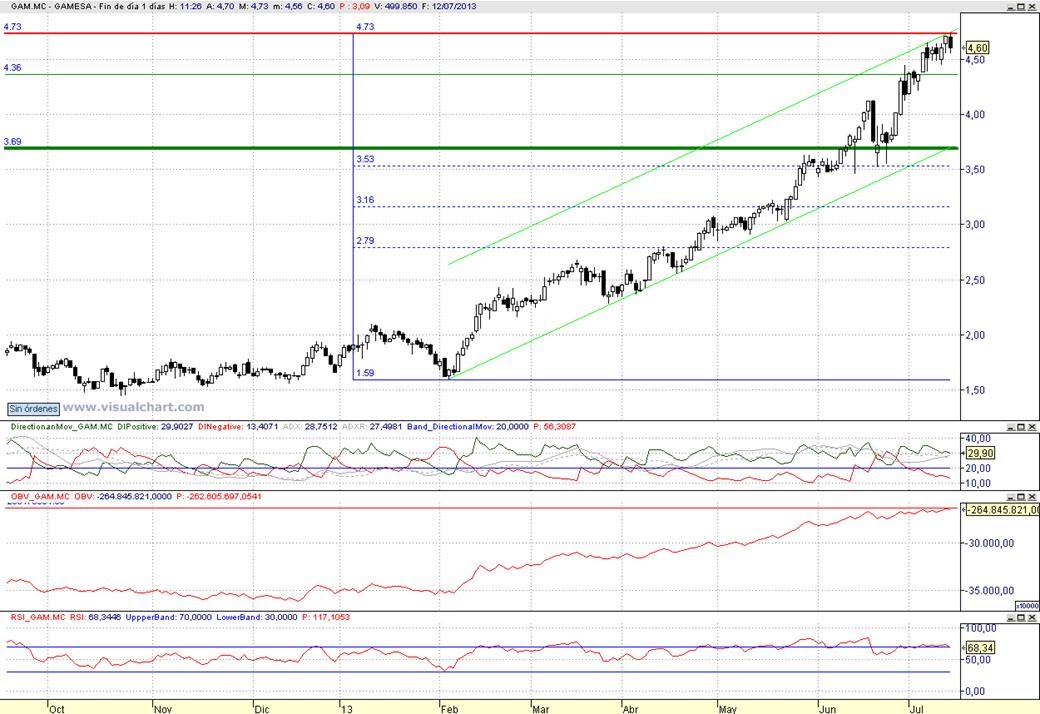 Consejo operativo GamesaAconsejamos venta de trading en ultracorto, Objetivo 4,36 € a 3,70 € / Stop loss con series superiores a 4,75 € Comparte esto:TwitterFacebookWhatsApp