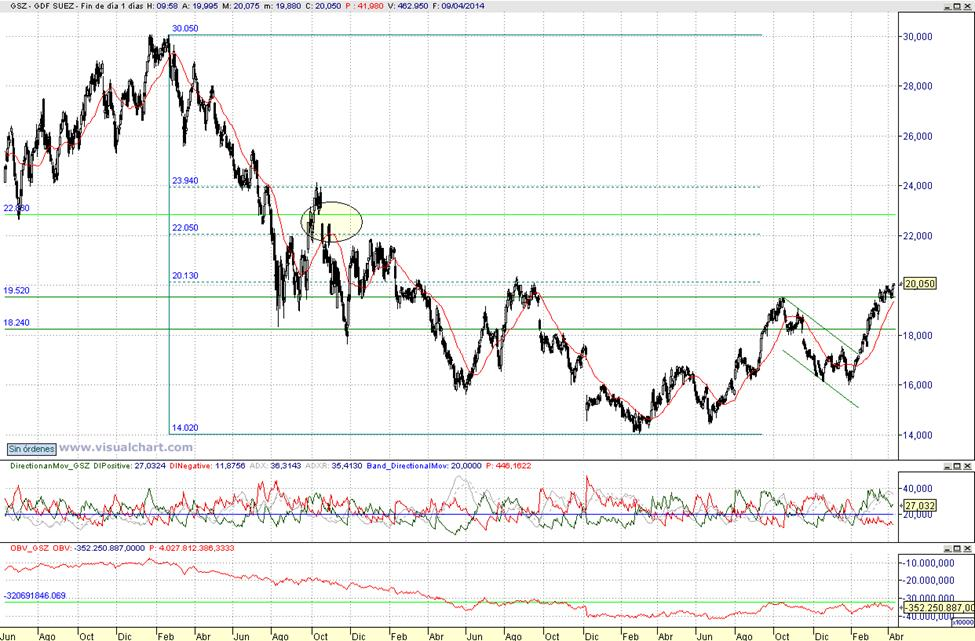 Consejo operativo GDF Suez SA (EPA:GSZ) Mktcap 41.96 B Rentabilidad por dividendo 8,43 % Aconsejariamos añadir largos, elevando a su vez el Stop de protección con cierre diario inferior a 19,52 € vs Objetivo de medio y largo plazo pretendido zona de 22,8€ / | |
