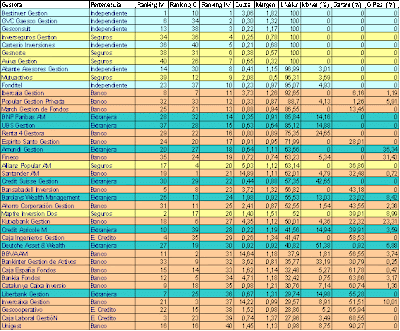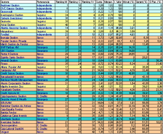 Ranking IV: Ranking según el índice valor, en caso de empate se pone primero a la gestora con mayor margen medio