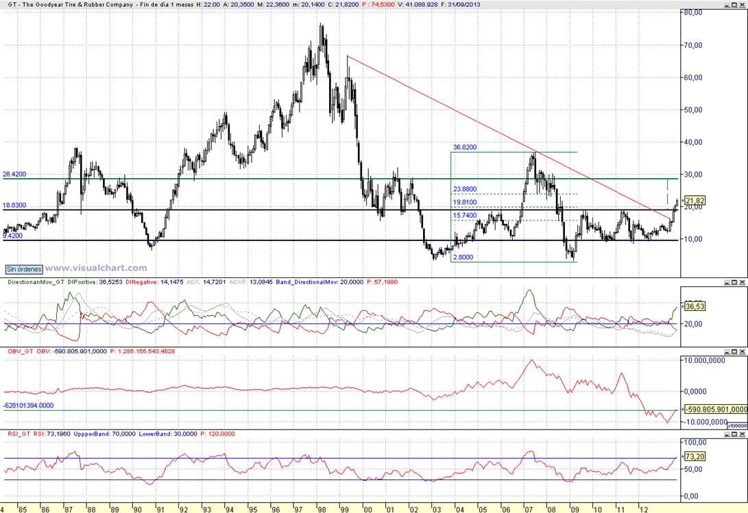 Consejo operativo The Goodyear Tire & Rubber Company NASDAQ:GT Mktcap 4.75B Aconsejamos incrementar compras de cara al medio y largo plazo, Mantenemos el objetivo pretendido en el rango 23,75 $ a 28,4 $ / Stop proteccion < 21,4 $ al cierre |