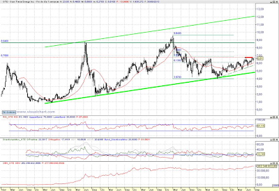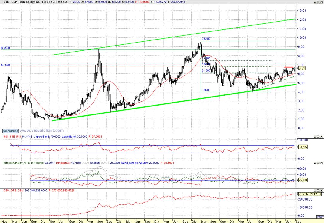 Aconsejamos compra moderada con cierre semanal superior a 6,75 $ / Objetivo pretendido en el rango 7,50 $ a 8,65 $ / Stop loss < 6,27 $ al cierre | |