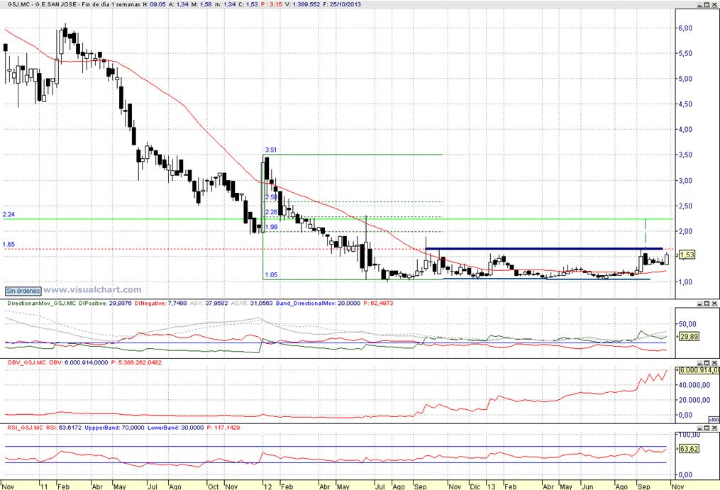 Aconsejariamos la entrada en este titulo pero con moderación, añadiendo tras cierre semanal superior a 1,65 € / Objetivo pretendido sobre 2,24 € Stop loss < 1.39 € al cierre semanal | |