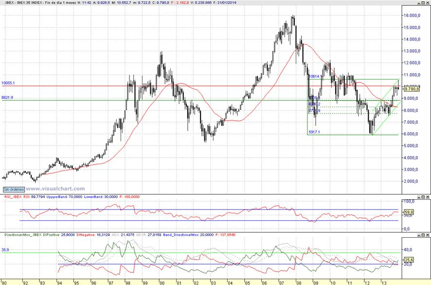 Consideramos que sigue vigente la estructura de rebote y solo rebote hasta que no queden anuladas las ondas bajistas vigentes desde el año 2008 y de este modo pensar en un verdadero tramo alcista en tendencia . Pero por otra parte, si se que pensamos que podría ser interesante invertir en nuestro mercado domestico mediante ETFs pero acomodándonos a niveles en nuestra opinión relevantes o bien con cierres consolidados superiores a 10.055 puntos o tras apoyo sobre el canal de reacción alcista principal entornos de 8621 puntos ( mientras tanto esperar) |