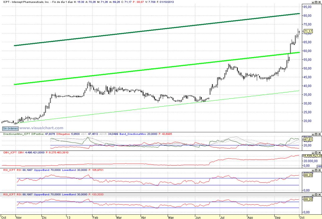 Aconsejamos establecer stop de protección con cierre diario inferior a 68,95 $ vs Objetivo pretendido sobre zona de 80$ / Según aviso del pasado día 23 de sept |