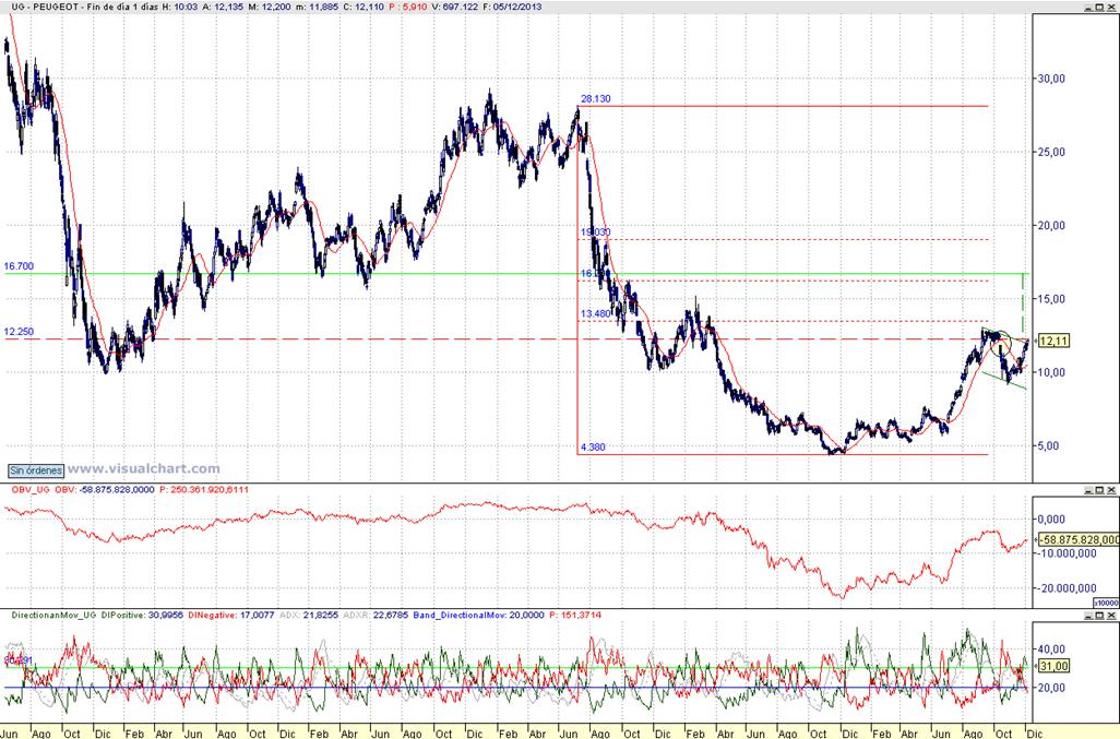 Consejo operativo Peugeot SA PA:UG Mktcap 4.06B Reiteramos compra parcial con visión de medio plazo tras cierre diario superior a 12,25 € / Objetivo pretendido Top sobre 16,70 € Stop loss < 11,6 € al cierre Según aviso del pasado dia 3 de Diciembre | |