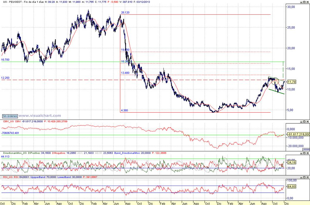 Consejo operativo Peugeot SA PA:UG Mktcap 4.06B Aconsejamos compra parcial con visión de medio plazo tras cierre diario superior a 12,25 € / Objetivo pretendido Top sobre 16,70 € Stop loss < 11,6 € al cierre | |