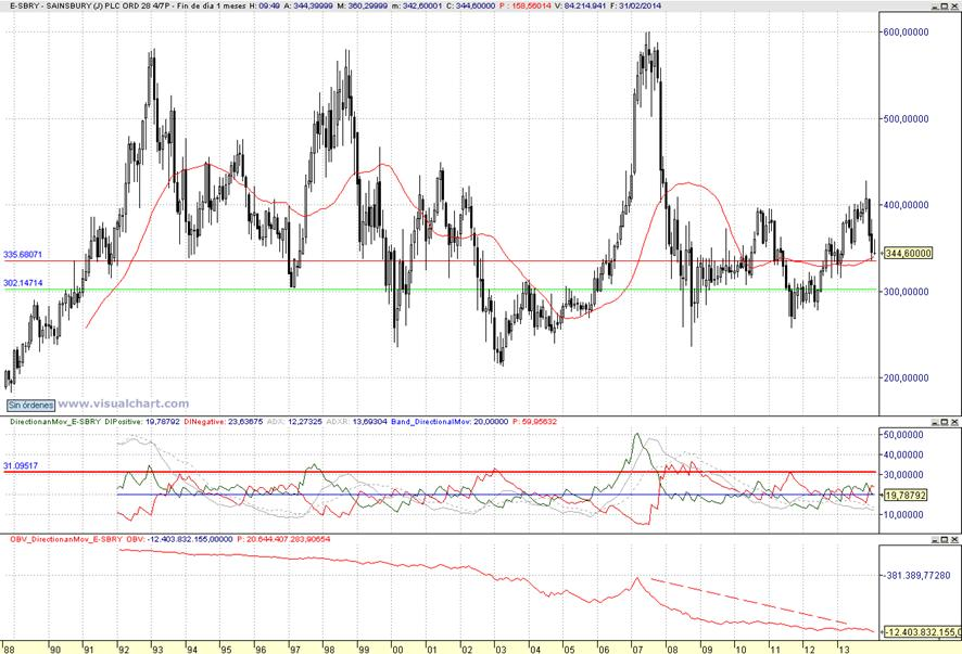 Consejo operativo J Sainsbury plc (LON:SBRY) Mktcap 6.54 B libras rentabilidad por dividendo 4,91% Aconsejaríamos vender e incrementar tras cierre mensual inferior a 335 peniques Objetivo pretendido de recompra sobre 302 peniques/ 1ºStop a la recompra con cierre diario superior a 355 peniques | |
