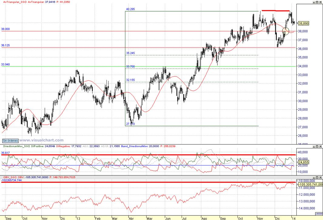 Consejo operativo Compagnie de Saint Gobain SA (EPA:SGO) Mktcap 21.33B Rentabilidad por dividendo 3.19% Aconsejaríamos venta parcial para trading tras cierre diario inferior a 38 € incrementando por debajo de 36,1 € Objetivo pretendido sobre los entornos de 34 € / 1ºStop a la recompra con cierre diario superior a 39,5 € |