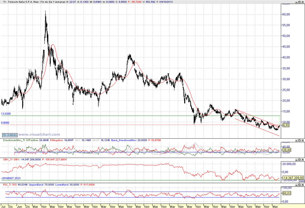 Consejo operativo Telecom Italia SpA (ADR) NYSE:TI Aconsejamos comprar o bien en el rango 8,40 $ a 8,25 $ o tras superación y consolidación de la zona de 8,80 $ Objetivo pretendido top de medio plazo, zona de 13 $ / 1 Stop loss de referencia con cierre diario inferior < 7,90 $ | |