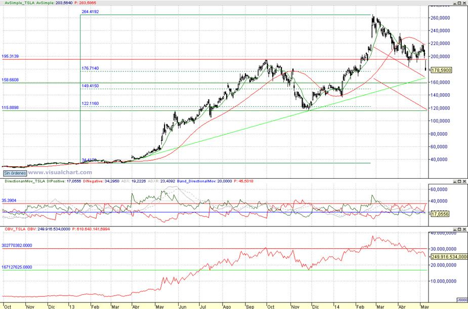 Consejo operativo Tesla Motors Inc (NASDAQ:TSLA Mktcap 22.15B Aconsejaríamos vender tras cierre diario inferior a 158,65 $ Objetivo pretendido de recompra sobre entornos de 115,90 $ / Stop a la recompra con cierre diario superior a 169,5$ | |||