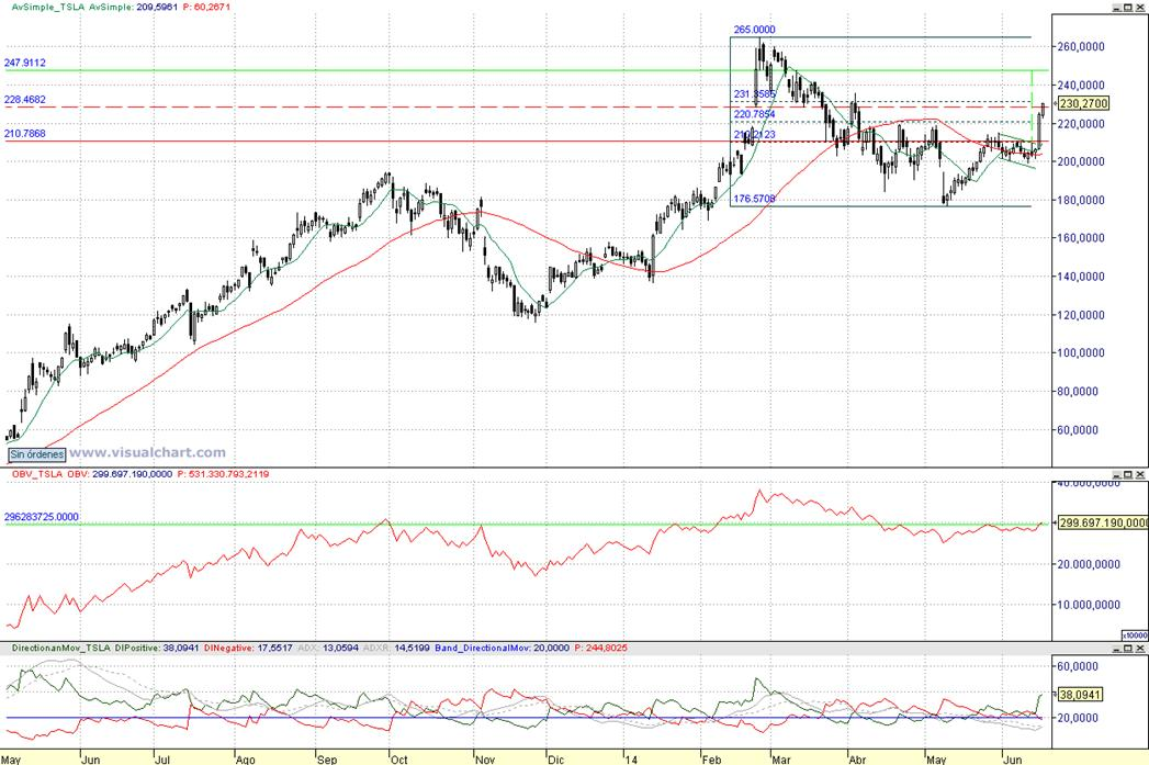 Consejo operativo Tesla Motors Inc NASDAQ:TSLA Mktcap 28.56 B Aconsejaríamos compra moderada con cierre diario superior a 228,5 $ Objetivo pretendido sobre 247,9$ / Stop loss < 225$ al cierre diario | |