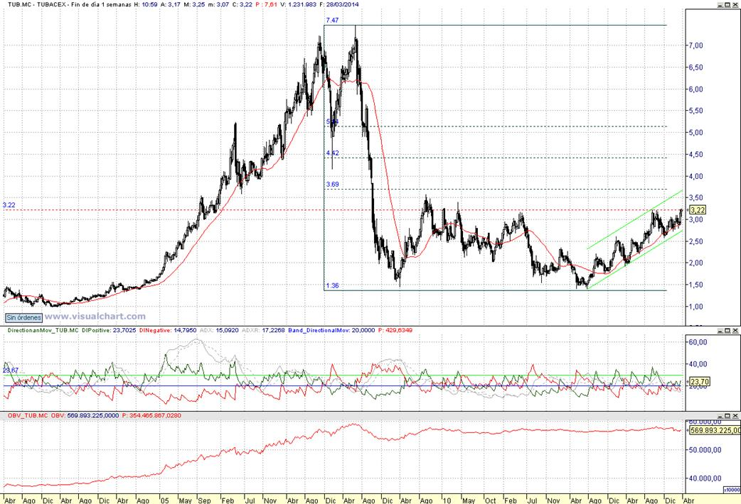 Consejo operativo TUBACEX Aconsejariamos comprar tras confirmación de cierre semanal superior a 3,22 € | |
