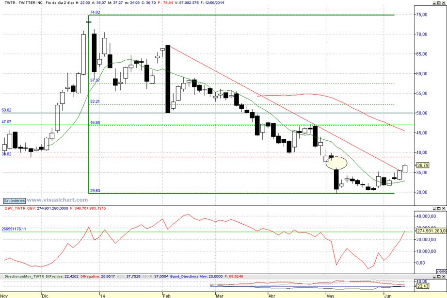 Consejo operativo Twitter Inc (NYSE:TWTR) Mktcap 21.68 B Aconsejaríamos compra muy moderada tras cierre diario superior a 38,85 $ Objetivo pretendido entre 47 $ y 50 $ / Stop loss < 36,05 $ al cierre diario Twitter, Inces una plataforma global para la auto-expresión y la conversación pública en tiempo real. Twitter es una plataforma en tiempo real, donde cualquier usuario puede crear un tweet y claro, cualquier usuario puede seguir a otros usuarios. Cada Tweet está limitado a 140 caracteres de texto, pero también puede contener medios ricos, incluyendo fotos, videos y aplicaciones. Los espectadores pueden ver fotos, videos y conversaciones directamente en los tweets para obtener la historia completa de un vistazo, y todo en un solo lugar. La compañía ofrece aplicaciones de Twitter para teléfonos, tabletas y ordenadores. La empresa genera sus ingresos publicitarios principalmente de la venta de sus tres productos promocionados: Promoted Tweets, Promoted Accounts y Promoted Trends. Sus usuarios incluyen a millones de personas de todo el mundo, así como las personas y las organizaciones, como los funcionarios públicos, celebridades, atletas, periodistas, equipos de deportes, medios de comunicación y marcas influyentes. En abril de 2014, Twitter Inc adquirió Gnip Inc. En junio de 2014, Twitter Inc adquirió Namo Media Inc. |